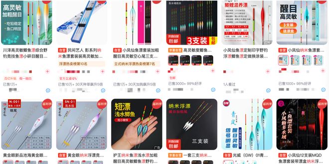 钓鱼人也是真的为这些产品买单,比如在材料端,普通芦苇经过碳化处理,身价就可能翻十倍,听说“每支浮标都来自三年生的优质芦苇”,就有人愿意为这份考究多付钱。而那些针对不同场景、不同鱼种的分门别类的浮标,贴上标签就能贵出不少,但大把的钓鱼人愿意为溢价买单。